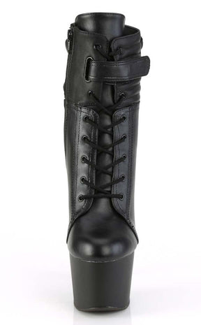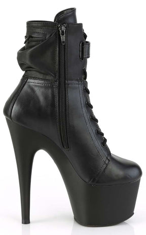 Sash yer cash while you throw down in the ADORE-1020POUCH boots! These sleek babies feature a black matte upper, lace-ups and inner zip as well as a handy zipped pouch hidden in the wide ankle strap.