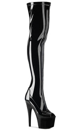 ADORE-3011 Black Patent Peep Toe Thigh High Boots