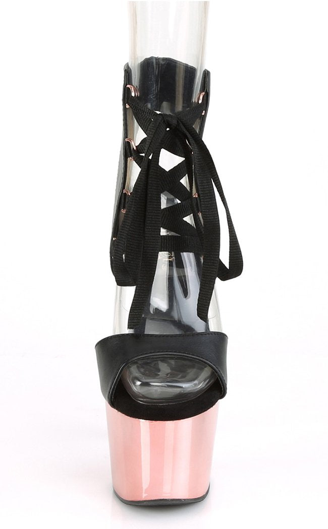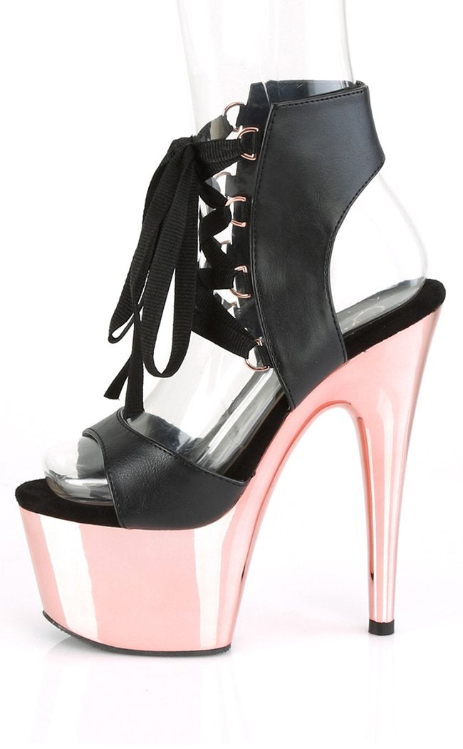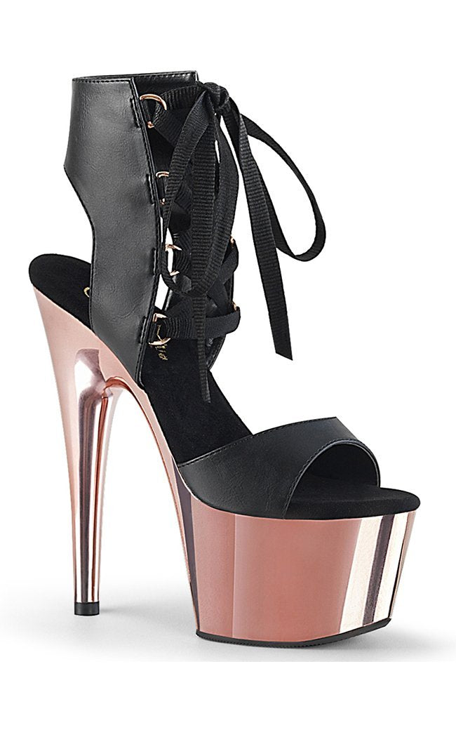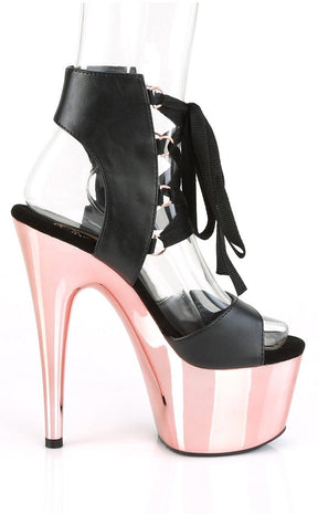 ADORE-700-14 Black Vegan Leather & Rose Gold Platform Heels