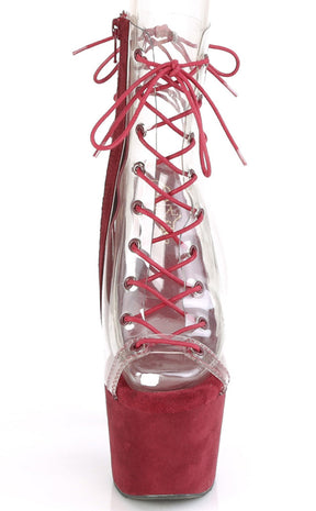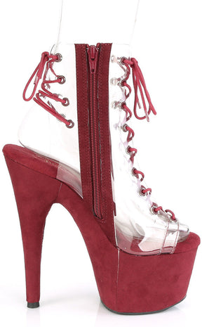ADORE-700-30FS Burgundy & Clear Faux Suede Platform Heels