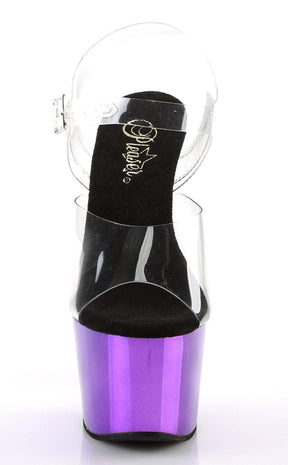 ADORE-708 Clear & Purple Chrome Platform Heels