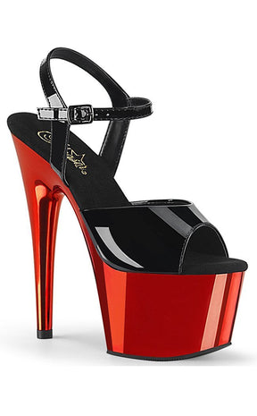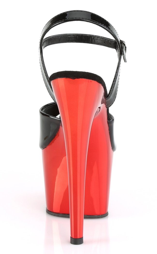 Shiny black patent faux leather platform heels with contrasting red chrome platform. Popular for pole and exotic dancers, these babies ooze sex appeal and glamour.