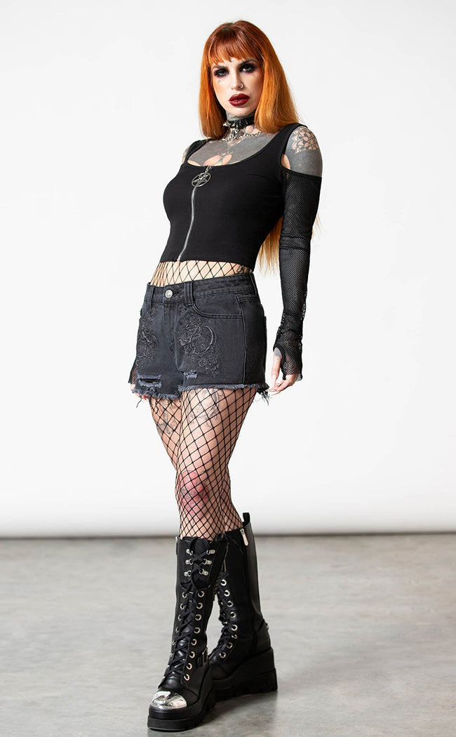 Let your booty bloom in the Alchemille Denim Shorts! Non-stretch denim forms these distressed shorts, featuring elaborately embroidered details and all yer fave denim deets like belt loops, pockets and a zip and fly closure.