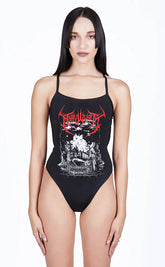 Complete with a bold contrasting graphic to the front designed exclusively for Mary Wyatt, this swimsuit will make you feel hotter than hell.