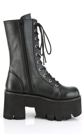 ASHES-105 Black Vegan Leather Platform Combat Boots