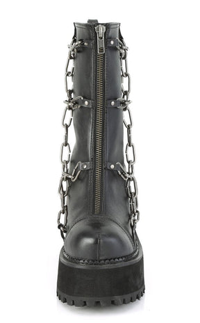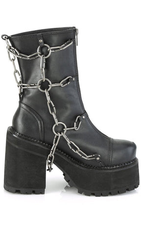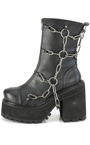 The ultimate biker boots! A harness of chunky chains and o rings flank these boots, a step up on yer regular punk kicks!