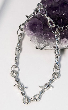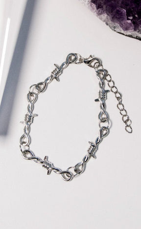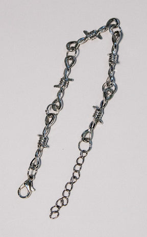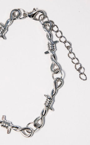 A little danger on the wrist for the escapee with a flair for the dramatic. This bracelet is a thinner more delicate alternative to the barbed wire bracelet for all you soft punks out there.