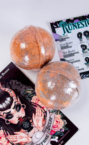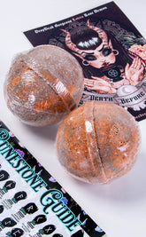 The Fortune Telling Fizzers contain a genuine gemstone etched with a Futhark rune once the bath bomb has fizzed away. Use the included guide to interpret the meaning of your runestone and see what the future has in store.