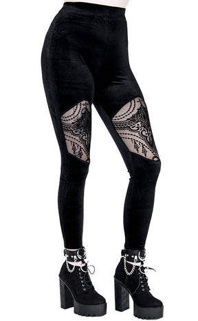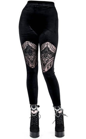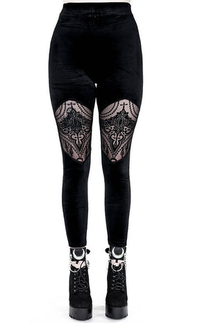 These sleek velvet leggings had a thick, elastic waistband for comfort and figure-hugging goodness. The thighs feature a mesh cutout decked out in Restyle's signature fortune teller motif.