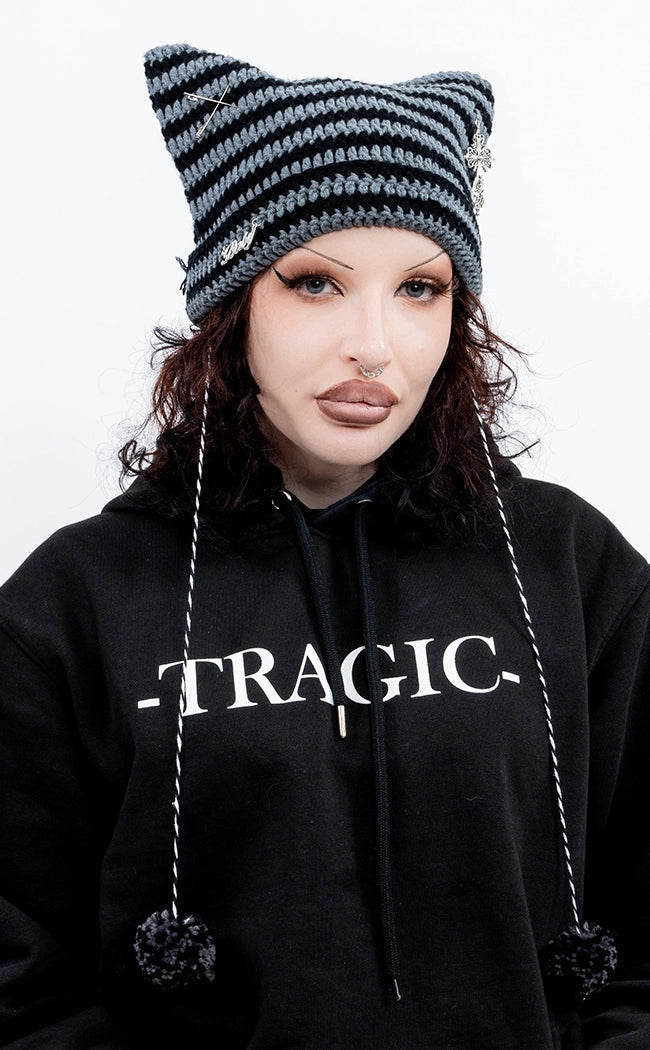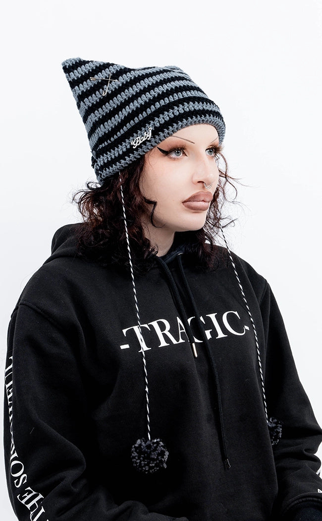 Keep warm and make a gutsy statement with our Bad Intentions Beanie! This stylish beanie has it all - crosses, safety pins, and a baby motif. Not to mention, it's soft, cozy and perfect for winter. This beanie was made for the misfits!