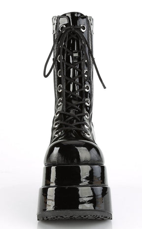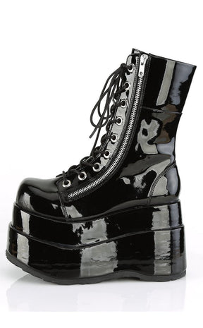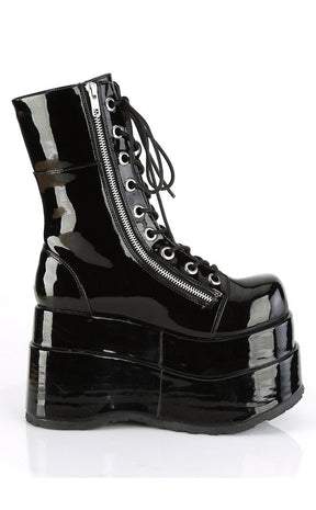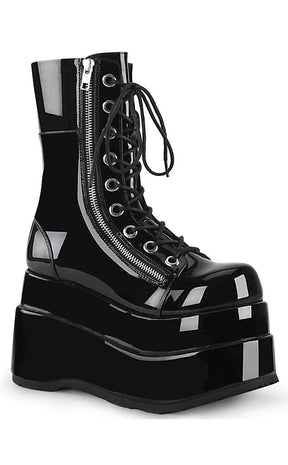 These mid-calf platform boots feature a chunky platform sole and inner and outer zip closure.