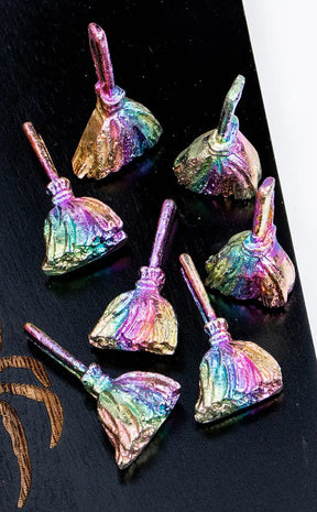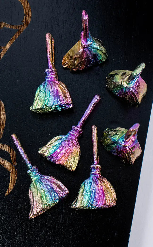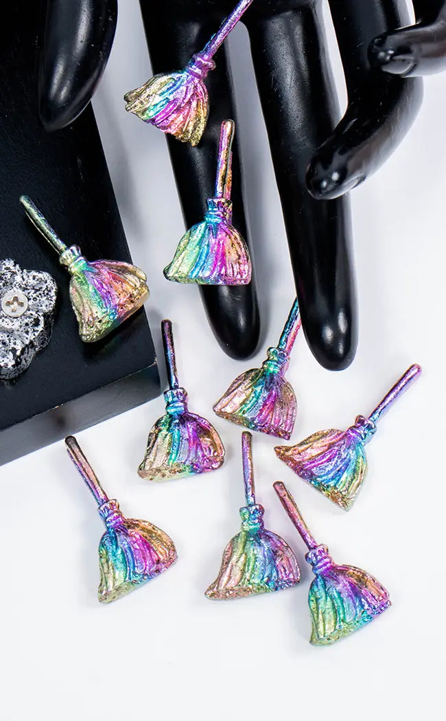 These mini brooms are around 35mm tall and have gorgeous Iridescent rainbow hues. You will receive one mini broom.