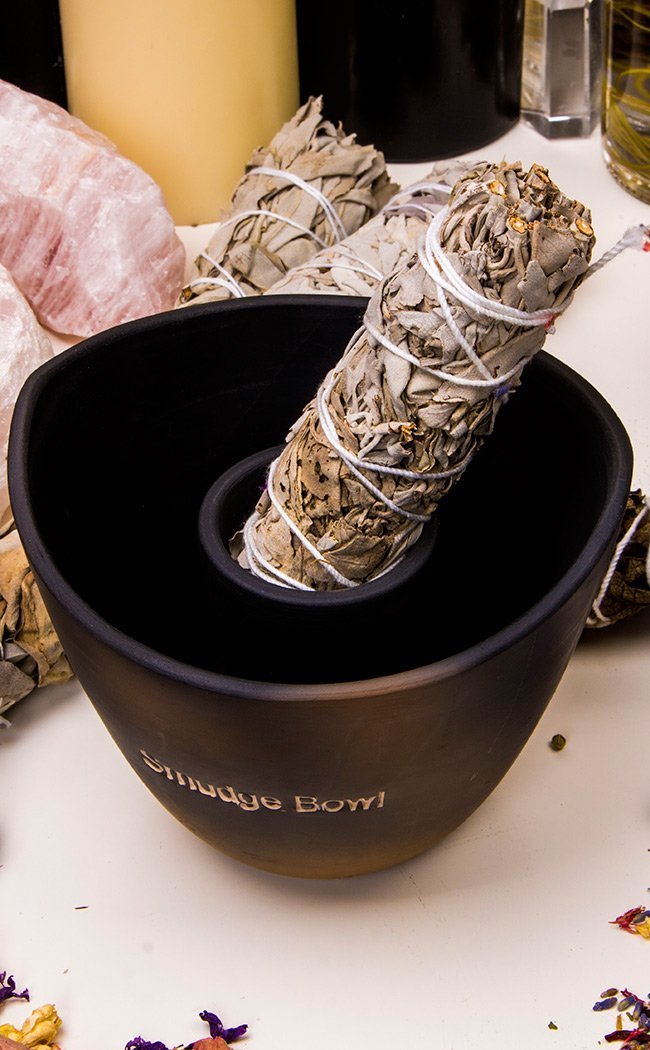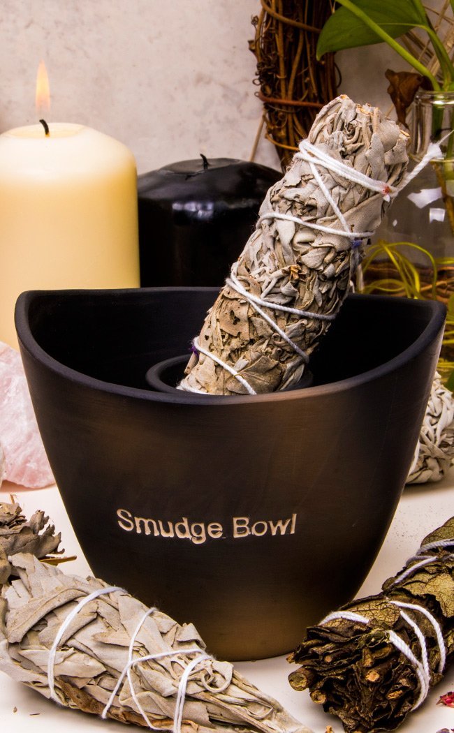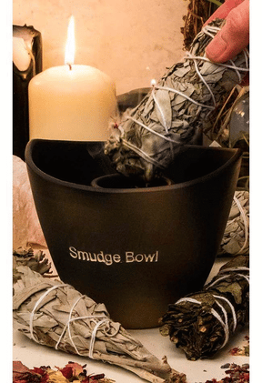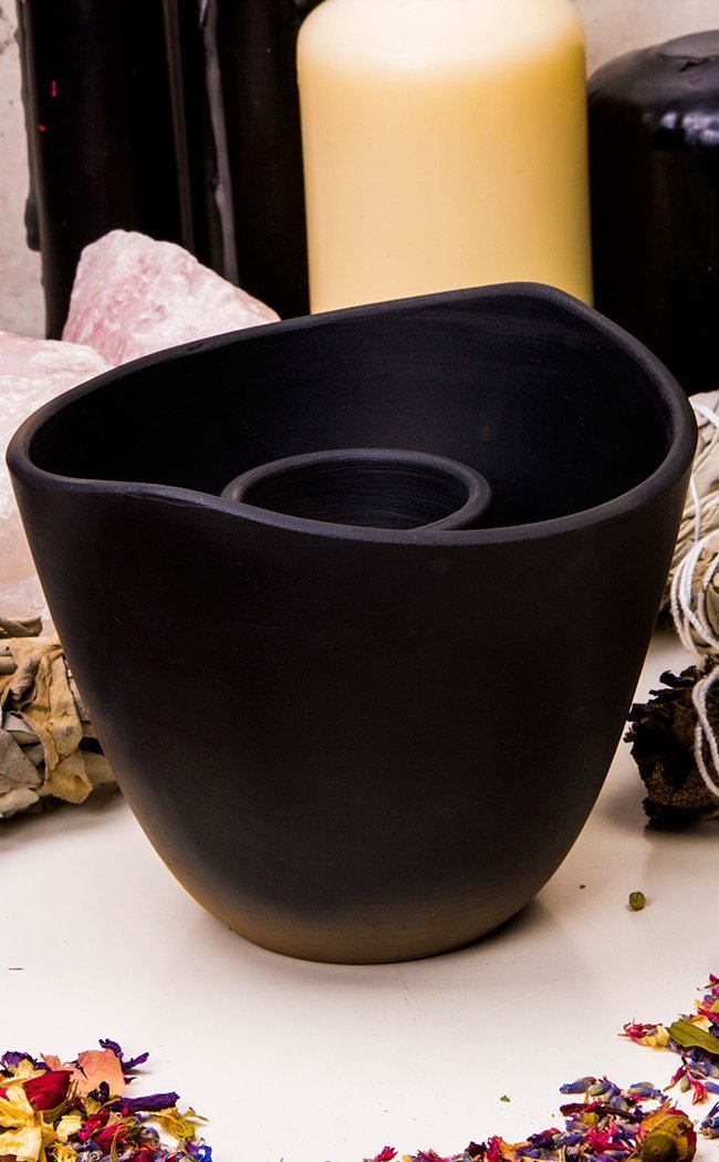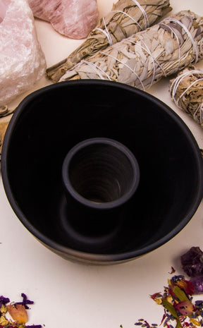 Beautiful classic black clay smoke cleansing bowl for your altar. Perfect for holding a herbal smoke cleansing wand or catching the ashes as you cleanse. Can also be used as a candle holder.