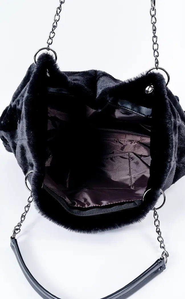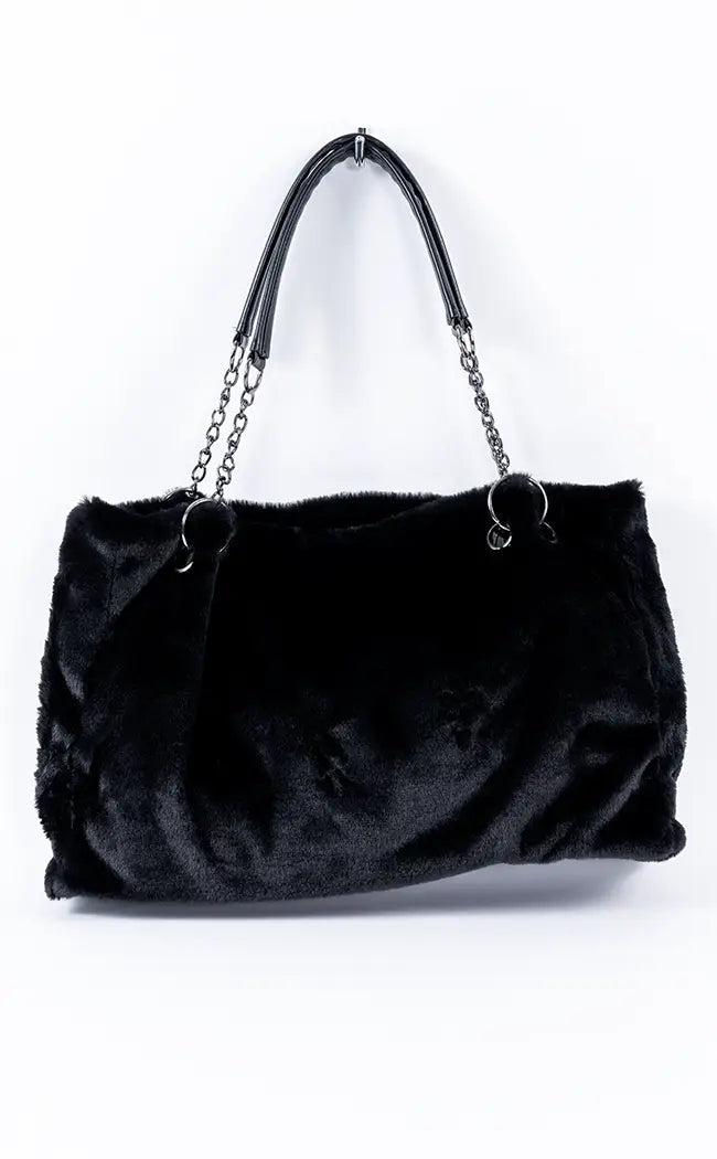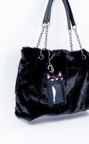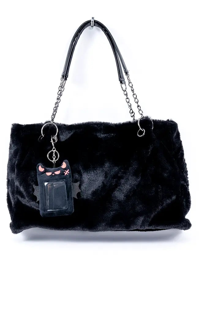 Say goodbye to rummaging around for your cards - this soft black fuzzy handbag with a bat card holder attached has got your back.