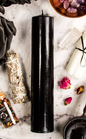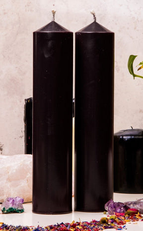 These black pillar candles measure 25cm x 5.4cm wide. Perfect for ritual, altar work or just ambience. These are unscented so you can anoint them with your own essences and oils. Try our various perfume oils here.