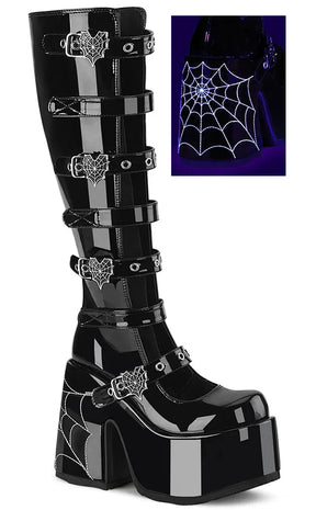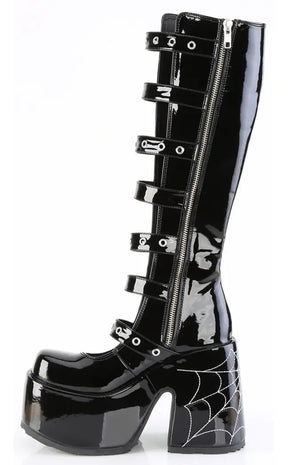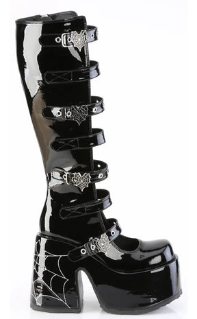 The CAMEL-223s are a force to be reckoned with! Look like a total badass with these knee-highs decked out with spider web heart buckles.