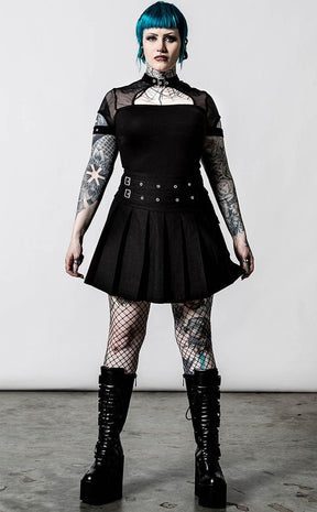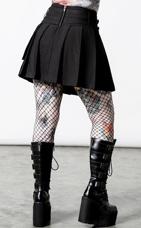 The Captive Spirit Mini Skirt is the cutest summer piece you'll ever find! The pleated body hangs from a wide waistband, which is decked out with two buckled straps and a handy side pocket for the ghoul who's prepared.