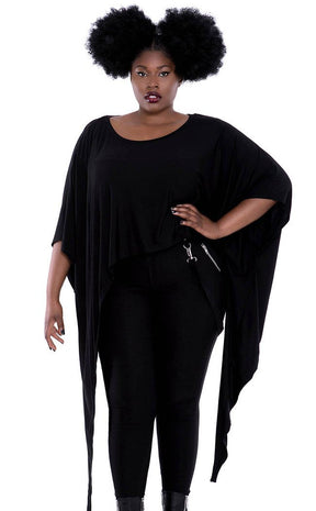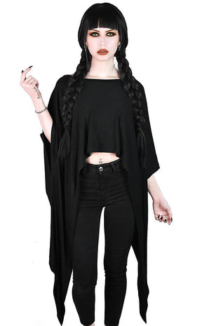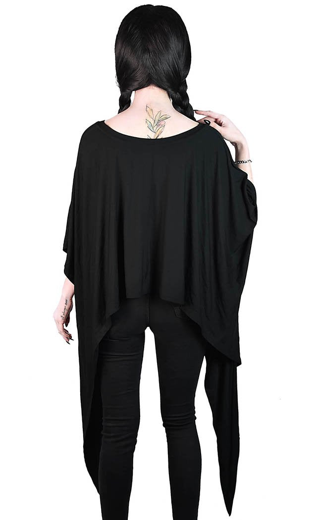 This top is dripping in witchy goodness. Drape over your flesh prison and top it off with the most ridiculously wide brimmed hat you own to ensure you look like you just emerged from the darkest depths after a millennia of peaceful slumber.