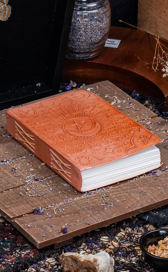 Start your grimoire, make art, or simply take notes in this beautiful leather journal!