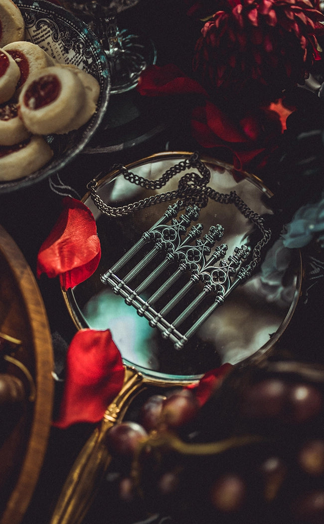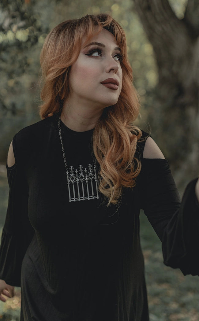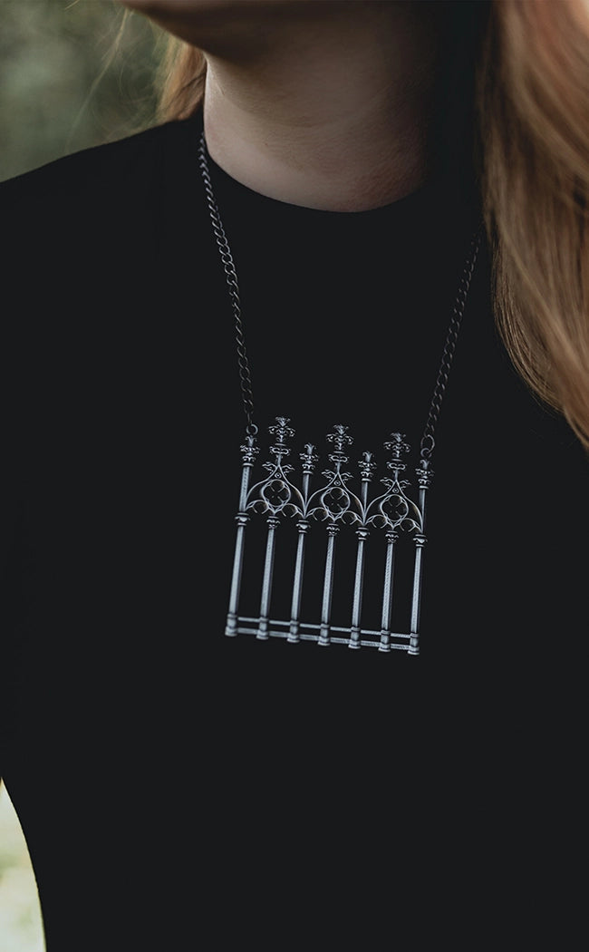 Inspired by a walk through a cemetery in Portland, Oregon. Featuring huge cemetery gates, this necklace is a perfect statement piece and can easily be stacked with other necklaces. Pair with Cemetery Walks Earrings.