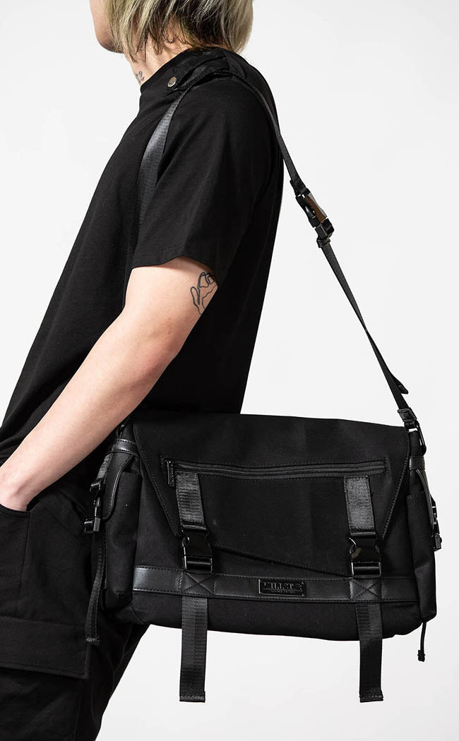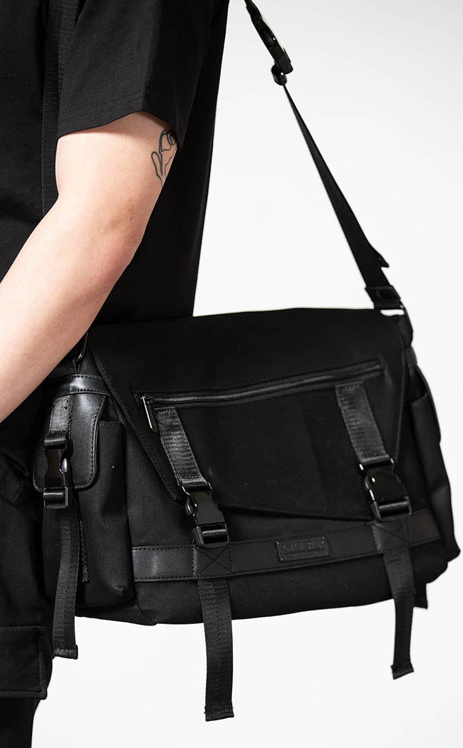 Be prepared for anything with the Chromer Messenger Bag! This versatile accessory is made with hardy, badass denim and luxe faux leather, forming this generously sized messenger with outer pockets and an adjustable shoulder strap. The flap features its own zipped compartment and unbuckles to reveal plenty of space for textbooks, your tablet and other necessities.