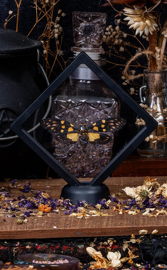 The display cases have a base that clips in for display. You can remove the insect and use it in your taxidermy or art. Cases are 140x140mm/inner is 116x116mm and 163mm diagonally across.