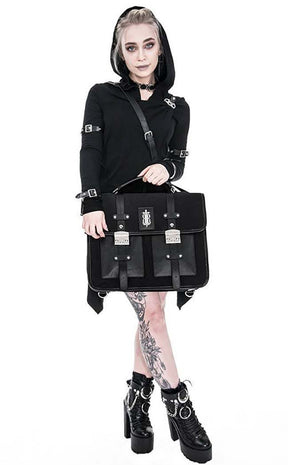 Be the versatile horror professional you've worked your ass off to be-the Corpor Goth bag is a messenger satchel and backpack in one: strategic D ring placement means you can pass the strap through to form two shoulder straps or a long, crossbody option.