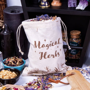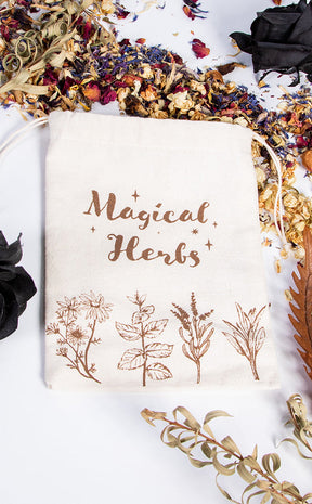 Drawstring cotton pouch for storing dried flowers and herbs for use with magical potions, elixirs and recipes.