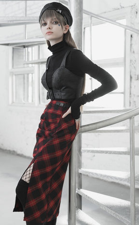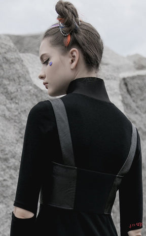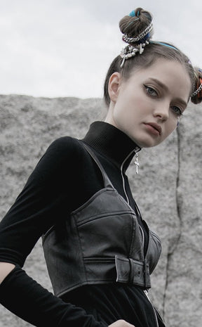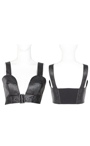 This crop cuts a deep V into a sultry neckline leading on from the thick shoulder straps and buckling just below the chest. The band at the rear is incredibly stretchy to sit comfortably on yer bod.