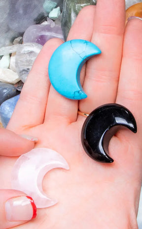 These sweet little crescent moons will make a unique addition to your altar and spellwork. Your moon will be intuitively picked from a selection of crystals including sunstone, black tourmaline, lepidolite, sodalite, and more.