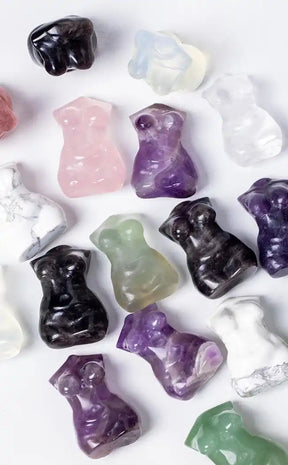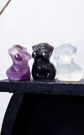Add to your crystal collection with one of our gorgeous crystal female figures. These beautifully polished crystals feature intricately carved details that make for a unique manifestation tool. Your figure will be intuitively picked from a selection of crystals including opalite, clear quartz, rose quartz, obsidian, aventurine, fluorite, labradorite, grey agate, amethyst and more.