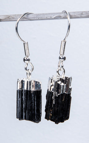 Crystal Rough Earrings | Black Tourmaline