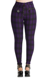 Look damn fine in the Damien tartan jeans. These babies are high waisted with a skinny fit, the tartan stretching to flatter yer legs. The pants secure with a front zip and feature zipped pockets with the signature Banned pentagram charm.