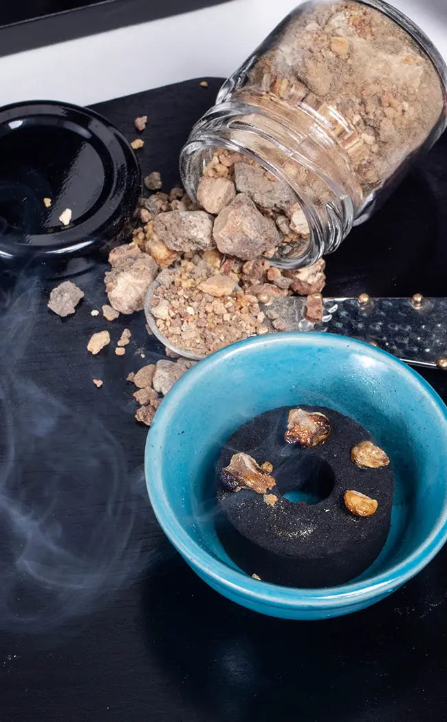 To use, take a small bowl capable of withstanding heat or a cauldron (you can add sand to avoid discolouration of your vessel). Place a lit charcoal disc at the centre and light it, ensuring it begins to burn. Once the charcoal is lit, sprinkle a small amount of incense on top. Remember to never leave the burning charcoal unattended.