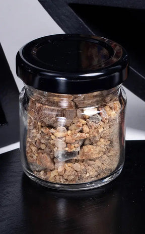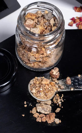 Comes in a glass jar. This dark copal is completely natural and unprocessed, so each batch may differ slightly in colour. To promote a long shelf life, store in a cool, dark area.