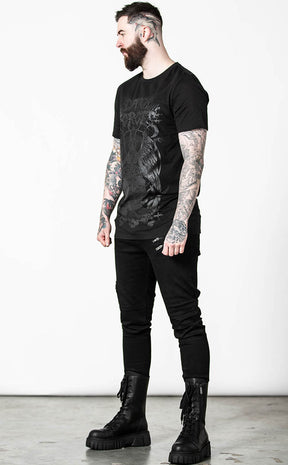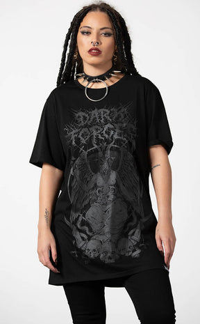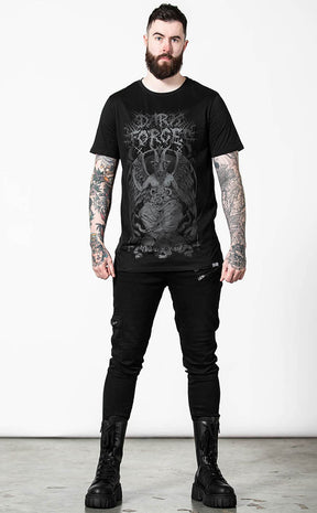 Made friends with yer demons in the Dark Forces T-Shirt! This unisex tee is made with super comfy cotton and features statement black-on-black artwork. Choose yer normal size or size up for a slouchy fit!