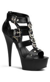 DELIGHT-658 Black Vegan Leather Platform Heels