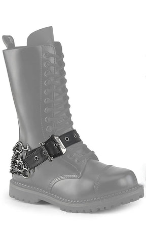 Meet Demonia's Spiked Coffin Boot Harness - an edgy and bold accessory to spice up your gothic shoe game. Constructed from tough faux leather and featuring spiked details and a coffin-shaped design, these are perfect for amping up your shoe game.