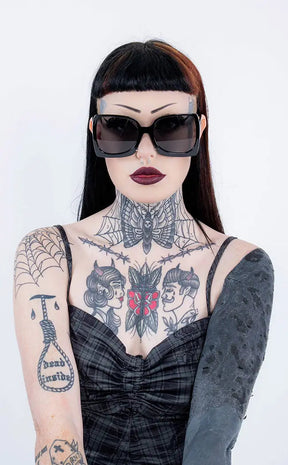 When you don't want to be found, hide behind our Desdemona Sunglasses. These big-lensed gothic-style sunglasses provide you with maximum coverage. When wearing the Desdemona shades, you can enjoy hidden life in the dark.