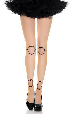 Beige tights that give the illusion of movable doll joints at knees and ankles.