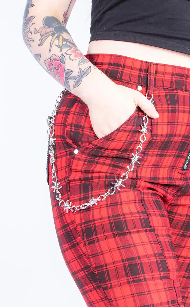 Nothing says "Don't touch" like a barbed wire chain belt chain! This silver tone chain features spikey barbed wire details and can be worn on pants or as a super chunky necklace. Heavy and durable metal alloy.