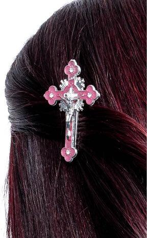 Each of these gothic hair clips has a cross with a crucifixion charm. With a simple sturdy alligator clip, they will stay where you put them and hold your hair at bay.
