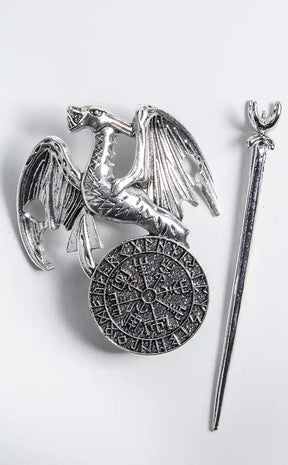 This clip features a dragon flying and holding a sigil inscribed with the 9 worlds of Norse mythology.