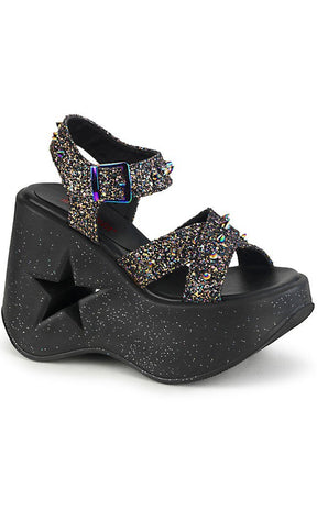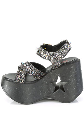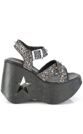 DYNAMITE-02 Black Glitter Wedge Heels