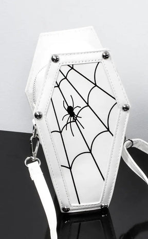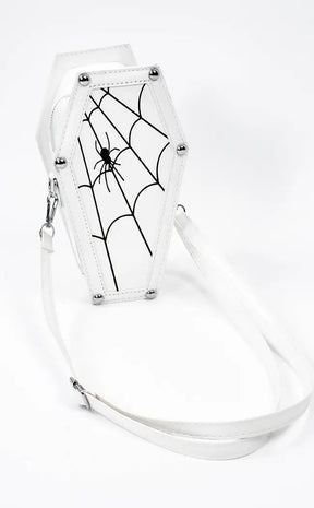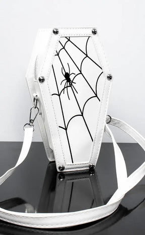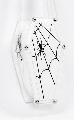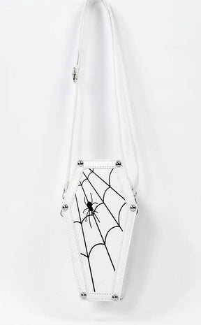 This coffin-shaped handbag features a spider crawling up its web on the front, making it a coffin you'll want to be buried alive with. Use it as your daily wallet or keep it as a clutch for your killer nights out!