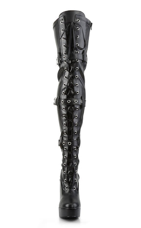 ELECTRA-3028 Black Vegan Leather Thigh High Boots