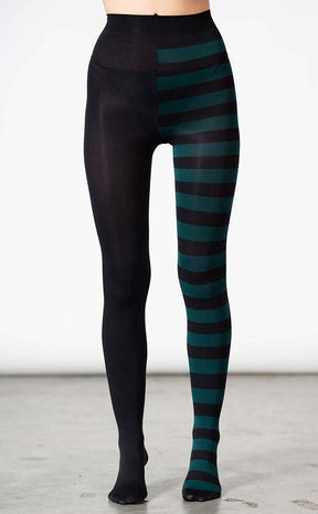 The two sides of my personality in one pair of tights! The Ella Tights are a unique combo of two pairs of tights in one: one striped leg and one fully opaque black leg.