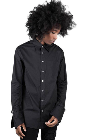 Preserve the very essence that makes you who you are. Get yer classically sleek threads together! This button up is made of super soft fabric that's as comfort as it is smart lookin', complete with buckles on the sleeves for an extra edge.