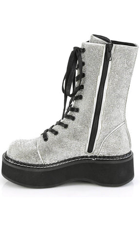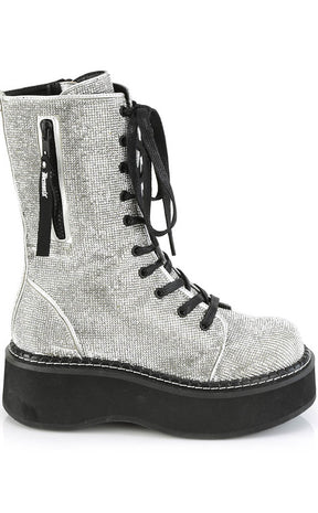 EMILY-362 Silver Rhinestone Combat Boots (Au Stock)