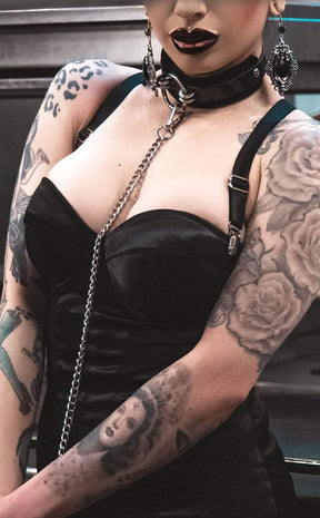 The Eris Choker & Lead is the kinky af accessory you've been waiting for! Made with reinforced steel and exceptional quality vegan leather, the choker features a thick and with an O ring the lead can be attached to. The choker is fully adjustable with a sturdy buckle at the rear.